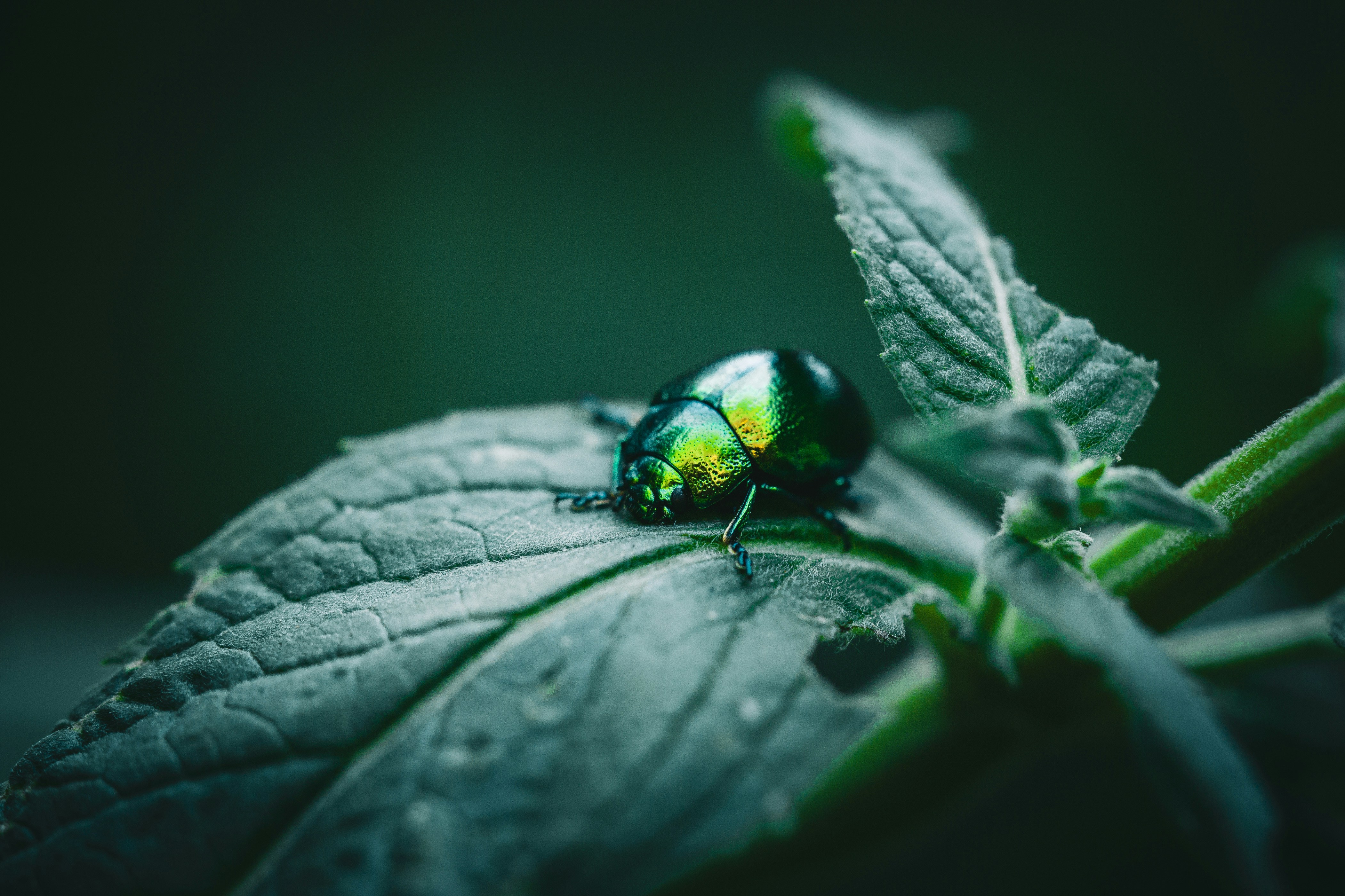 Banner photo: Many beetle species such as the green mint leaf beetle (Chrysolina haemoptera) have developed unusual physical traits to protect themselves and their progeny. The hard chitin–polyphenol–protein complex armor with a thin, water repellant cover, is the first and most important line of defense against predators and pathogens. The highly ordered structure of chitin also confer the beetle the unique metallic green color, which is know as structural color observed on its elytra.